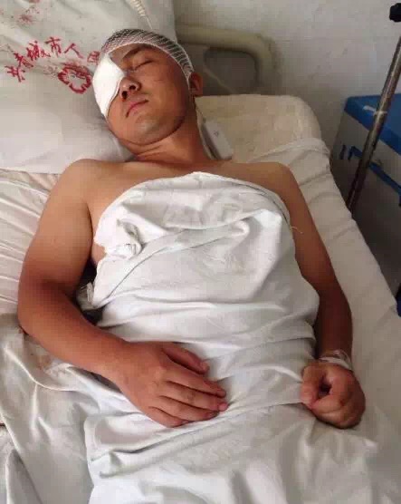 7月9日上午,该镇跃进村圩堤再度出现险情,急需砂石填料,刘陆斌第一个冲了出去,不顾连续在圩堤上奋战了七天七夜,身体严重透支,硬是跟着开三轮车村民去抢运砂石。由于圩堤道路崎岖不平,满载砂石的三轮车瞬间侧翻,刘陆斌不幸从车上摔下,飞来砂石严重挫伤后脑,右侧眉骨骨裂,鲜血顿时直流,满脸鲜血和汗水的他,依然心系圩堤和群众,说着“我没事,简单处理一下就没事,我还可以抗洪抢险”,直至流血过多,晕厥过去,才被紧紧送往共青城市人民医院,后因情况危急,又被转送至省人民医院救治。