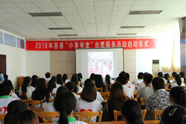 小草学堂如期而至今天上午,莒县2016年“小草学堂”志愿服务活动正式启幕。在未来40天的假期内,来自曲阜师范大学、中国石油大学、泰山学院及山东建筑大学的160余名大学生志愿者,将奔赴各个岗位,进行暑期支教志愿服务。