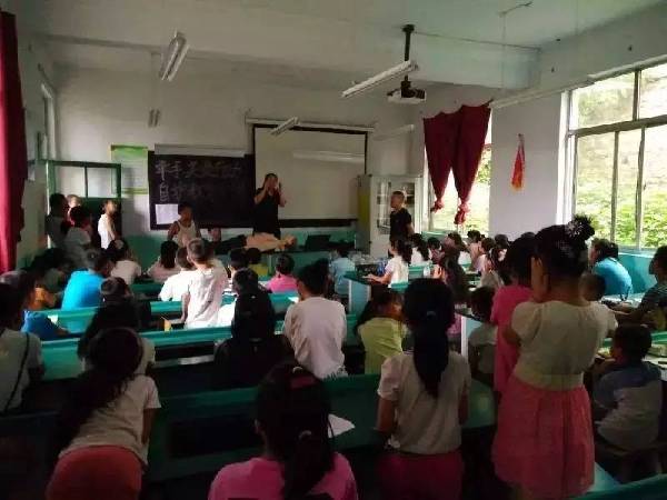 这里有一大部分孩子是“牵手关爱行动”数据库中的牵手儿童。“牵手关爱行动”的青年志愿者们在这里继续开展自护教育巡讲。