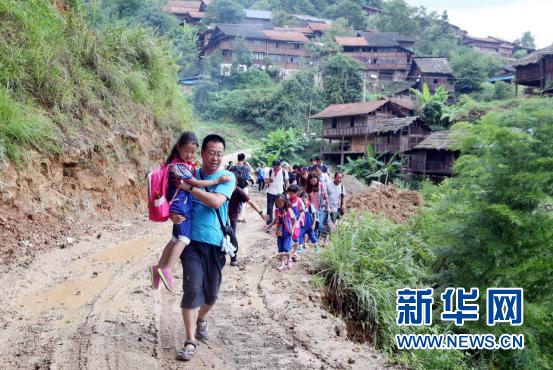 笔者跟随融创公益队伍携带捐助物资,从中国最大的城市北京,乘飞机轻松穿越千里河山,却在到达剑河县后走上一条仅120公里却艰辛无比的跋山涉水之路:行车沿着一条万丈悬崖边的临渊公路颠簸到码头,坐村长的旧船在江道上迎雨漂荡3小时,最后扛着行李徒步爬上一座几乎完全是60度陡坡的险山,此间曾数次被泥泞红土陷住,却也为山间绿墨般的梯田景观美到窒息。