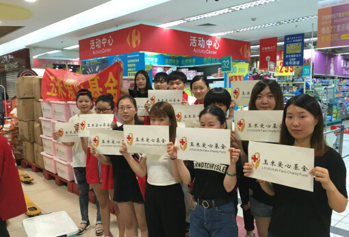 2016年7月12日,15名玉米爱心基金的志愿者参与中国红十字基金会为抗洪发起的“天使之旅”行动,协助分装救援物品。