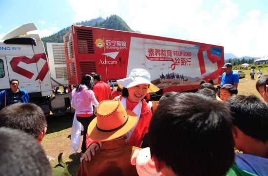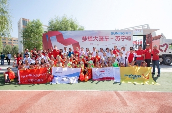 “梦想大篷车苏宁号”是一辆承载素养教育的移动多媒体教室,将于2016年4月—2016年9月沿丝绸之路停 靠六省十余站,进行累计三十多天的素养、创新课程,将 3D 打印的概念传递给西部丝绸 之路沿线的学生和老师们,开阔其教、学新思维,更好地与世界领先概念接轨。把《爱绿小卫士》、《家乡特产》、《理财》、《梦想剧场》、《3D打印科技课程》、等梦想课程活动带往更多的地方。 “梦想大篷车苏宁号”项目已是第二年开启了。2015年,真爱梦想联合苏宁发起“梦想大篷车”,开往全国六省十一县,把素养教育的理念传播到各个地方。它长17米、高4米的大篷车,重27吨,内部“五脏俱全”,挂车厢体可以完全展开,展开后的内部面积近60平米。这辆集书架、课桌、平板电脑、投影仪等教学用具于一体,兼具多媒体视频教学、小型图书馆、移动阅览室、流动电影院等多项功能于一体的大篷车,每到一处都会停留2至3天,让当地的孩子们体验多节梦想课程,为创意性的互动课堂提供了充分的硬件保障,给孩子们带去更多现代化、互联网化和多元化的学习体验,给当地带去素养教育的新理念。 上海真爱梦想公益基金会8年来始终专注中国素养教育的发展,推动教育均衡。坚持以不断完善的“梦想中心”——“硬件+软件”为核心的公益服务体系推动中国素养教育发展。2008年成立至今,累积超过32.7万人次捐 款,募集3.3亿元人民币善款;素养教育服 务体系涵盖了2108所学校的280余万师生, 累计培训教师47114人次;2015年,新建 460间梦想中心,当年累计梦想课程开课教师达18701人次,春秋两学期统计的梦想课 程数合计达到54万课时。