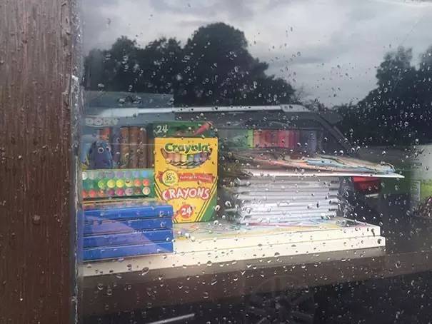 ▼其中一个储物柜在学校附近,她还放置了一些学习用品。