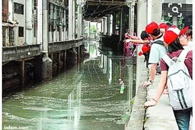 “乐水行广州”志愿者从汇入珠江的河涌里取水观察。