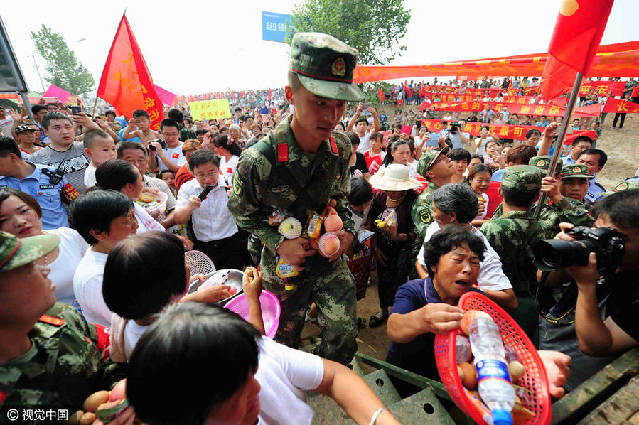 2016年7月19日以来,河北邢台连续发生强降雨,导致七里河决堤,河两岸12个村庄不同程度受灾,人民群众生命财产遭受巨大损失危难关头,铁军出征!国家应急救援专业力量——武警水电部队、武警交通部队闻令而动,470多名兵力、90多台大型机械装备,星夜驰援,于7月25日13时抵达现场,一场抗洪抢险攻坚战迅即在七里河打响。武警水电部队、交通部队并肩作战,共同承担七里河损毁堤坝修复加高任务,他们要将这段河道从40米拓宽到125米,并筑起高2.5米、长1200米的堤坝。武警水电部队已完成任务今天上午九点撤离邢台感谢所有武警官兵为邢台灾区所做的一切武警水电部队、武警交通部队,是英雄的铁军、人民的战神。他们以实际行动保卫着国家与人民的安全。2016年8月4日,河北省邢台经济开发区大贤村村口,百姓送别参加抗洪救灾的武警水电部队官兵。