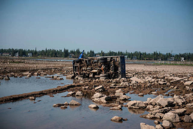 湖南华容洪水退去 “敢死队”车辆浮出水面 (1/8)