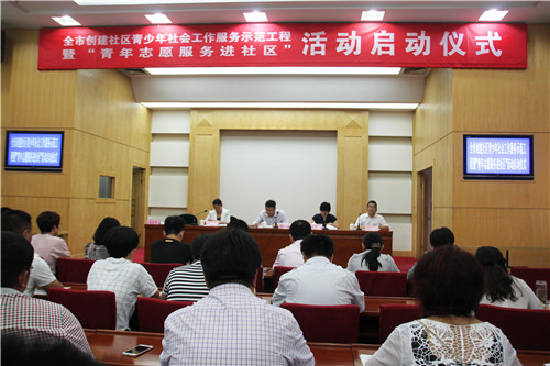 8月11日上午,全市创建社区青少年社会工作服务示范工程暨“青年志愿服务进社区”活动启动仪式于市政府大楼三楼多功能厅顺利举行。共青团山东省委权益部部长齐延鹏、共青团莱芜市委书记孟云霞、共青团莱芜市委副书记高小扬、莱芜市民政局党委委员、工会主任王燕出席启动仪式。