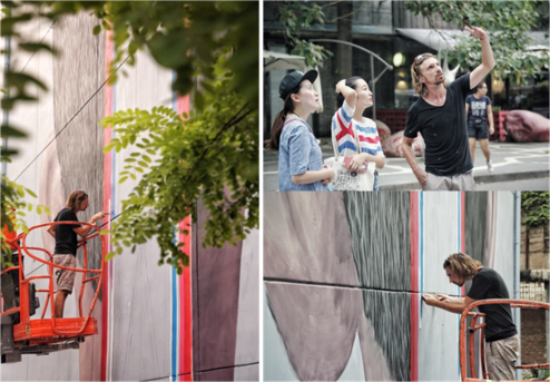 正因为这些在偏远地区小学的经历,对于此次在北京艺术地标——798艺术区的创作,柒先生有了更多的思考,这幅以”儿童关怀“为主题的作品,通过孩子的背影和彩色之门,留给人们更多的想象空间,谈到作品创意,他说:”‘为爱上色’艺术+项目包括学校和城市两部分,我希望在城市的创作能与山区小学相联系,希望通过墙画呼吁人们给孩子更多表达自我的机会,期待他们的童年拥有无限的自由想象空间。同时,这幅画也是为每一位看到作品的成年人而创作的,每个人都可以有自己的理解和诠释。“