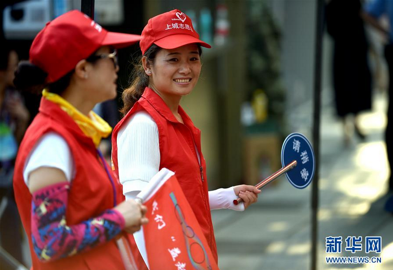 随着G20峰会的临近,杭州的西湖景区、大街小巷、车站码头、街道社区处处可见志愿者的身影。自2015年12月峰会志愿服务工作启动以来,已有超过100万名城市志愿者投身于志愿平安、志愿文明、志愿旅游、志愿关爱、志愿生态、志愿国际、志愿文化等志愿服务行动中。新华社记者黄宗治摄