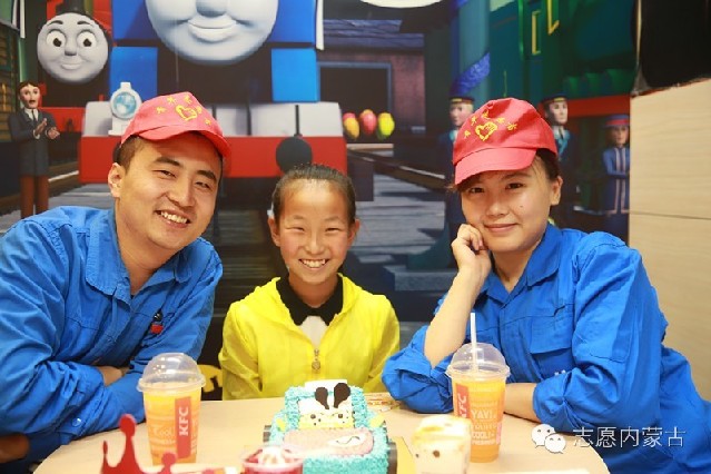 呼和浩特热电厂青年志愿者们关爱结对女孩,带着她来到内蒙古科技馆,陪伴她度过了一个有意义的生日
