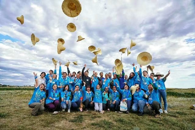 16日一大早,志愿者们跟随廖理纯团队奔赴位于内蒙古锡林郭勒盟正蓝旗宝绍岱的第一绿化基地。