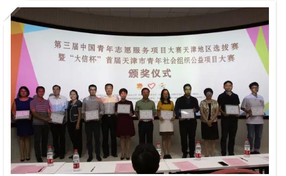 大赛决赛阶段活动由项目展示、专家评审、精英论坛、颁奖和培训等环节组成。经过为期两天的精彩展评,“伴你成长”关爱流动儿童等10个志愿服务项目获得特等奖,蓓蕾关爱行志愿服务等 20个志愿服务项目获得一等奖,爱满回家路——网上订票我们义务帮您等10个志愿服务项目获得了“大信杯”首届天津青年社会组织公益项目大赛优秀项目奖,并现场为获奖项目代表进行了颁奖,两个优秀获奖项目进行了路演展示。