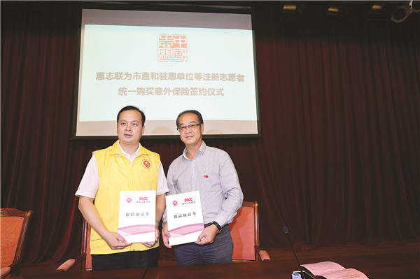 开展志愿服务发生意外最高可获赔10万元。9日,市志愿服务联合会(下称惠志联)第一届第二次会员代表大会在市国土局召开。会议上,惠志联与中国人民财产保险股份有限公司惠州市分公司(以下简称“人保惠州分公司”)签订了保险协议,这意味着,在惠州志愿服务网(http://zyfw.hznews.com/)注册的市直及驻惠单位的4.5万名志愿者正式拥有一份意外保险。