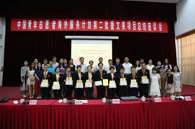 最后,与会嘉宾向志愿者颁发了海外服务计划证书和奖章,向志愿者派出单位颁发了志愿者派出单位牌匾并与大家合影留念。