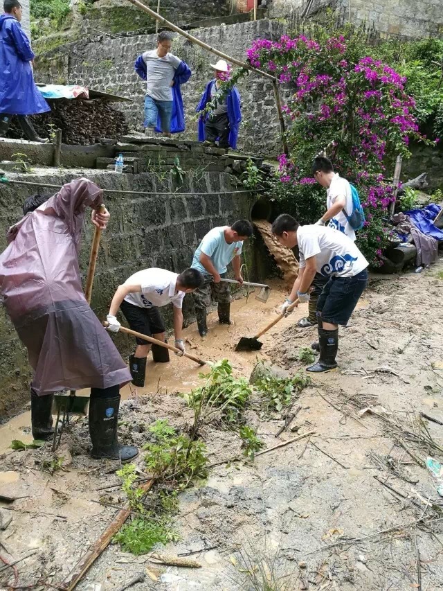 图为中南财经政法大学研支团参与服务地抢险救灾