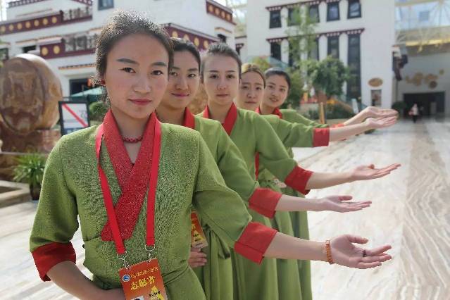 2宛若一株株“格桑花”的她们,成为藏博会最靓丽的风景线