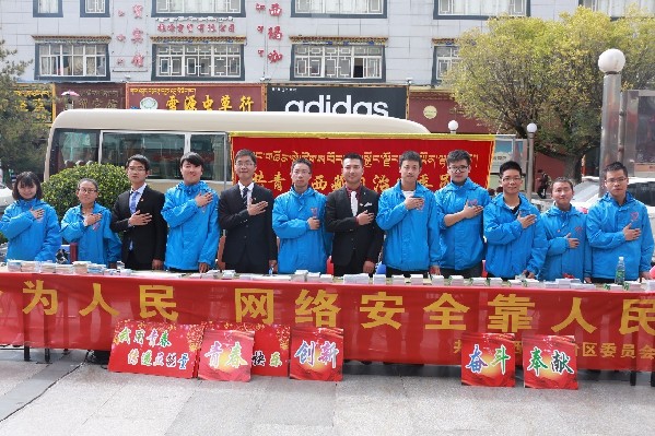 共学网络安全知识,共练网络安全技能,共筑网络安全防线,“网络安全为人民,网络安全靠人民” ...... 清朗网络,看我青年力量 图为西藏青年志愿者走上街头宣传网络安全知识的场景。