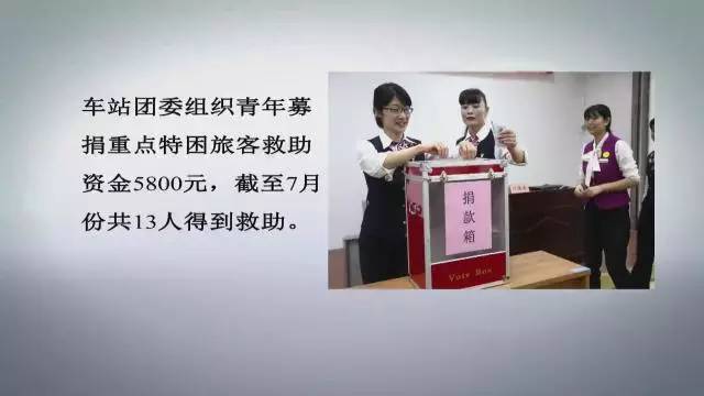 车站团委组织青年募捐重点特困旅客救助资金5800元,截至7月份共13人得到救助。