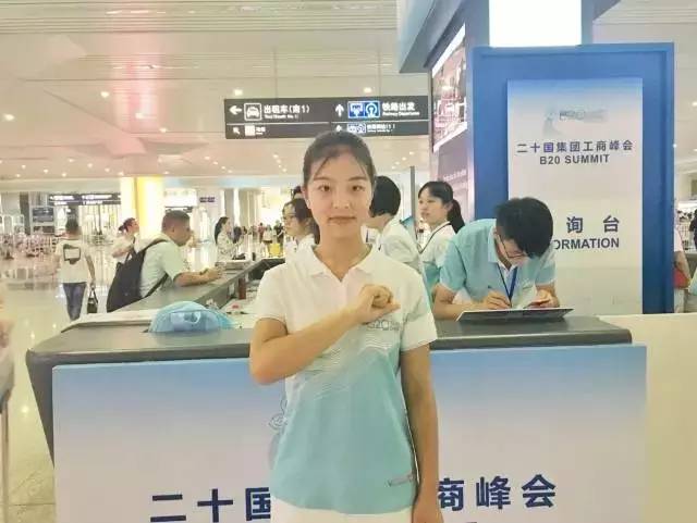 浙江越秀外国语学院王燕,20岁,英语专业,B20志愿服务大队,洲际酒店(B20峰会会议主会场)与会记者引导