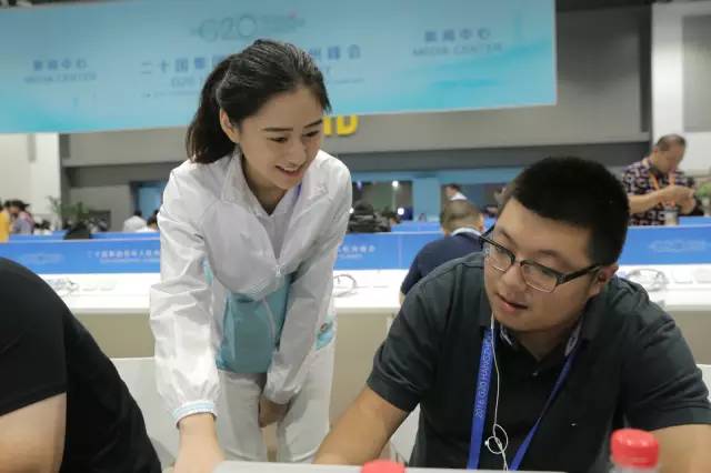 在4号和5号,我们分别服务的是联合国秘书长潘基文,在服务欧盟主席的时候,容克主席还亲切的与我握手。当然在5号见到了IMF拉加德和土耳其总统。其实在这个会场是有8个小伙伴儿与我并肩作战。有负责签到,发放同传耳机,递话筒,引导,维护秩序……我的主要工作就是递话筒,真的很紧张害怕自己出了差错,所以全程都要全神贯注认真听。经常是两场会议连在一起,所以我们一般工作时间就是6个小时以上没有间歇。虽然会有些疲惫,但每个人脸上都会充满笑容。工作的疲惫和辛苦让我在一起感受到团队的力量,我们会在紧凑的休息时间里相互照顾,让我意识到团队是有集体精神。很感谢自己参与到本次峰会,让我学习让我成长。
