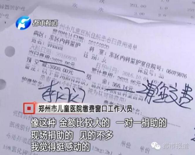 10月3日上午,偶然听到小郭的求助电话,一位陌生女士来到缴费窗口在小郭女儿的诊疗卡上充了5万块钱。