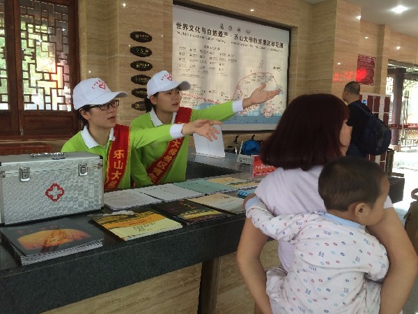 国庆黄金周期间,乐山市共设19个青年文明志愿服务岗,上岗服务志愿者260余人次,共为3.5万余人提供了志愿服务!其中,服务游客2.9万余人,服务市民及其他人员0.6万余人;开展志愿服务内容3.4万余次,其中,引导咨询3万余次,秩序维护1600余次,重点帮扶31人次,便民利民2200余次,应急救助33次,发放资料近8000份。