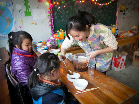 就是在离城市中心不足25分钟车程的地方,扶风小学。全校396个学生,都来自最贫困家庭,学校里百分之六十的孩子交不起学费,普通老师一个月只有一千元的工资,我刚毕业就来到这里,在扶风学校支教,没有要学校一分钱工资,只要学校对每一个学生好!