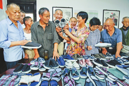 志愿者戴家美、计德翠重阳献爱心 制百余双鞋送老人
