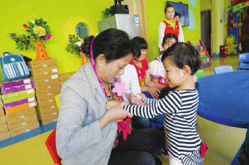 10月8日下午,花园社区联手红黄蓝亲子园开展“迎重阳传美德”关爱老人活动。在活动现场,孩子们动手制作花环送给老人,义务的给老人捶背,为老人送上节日的祝福。