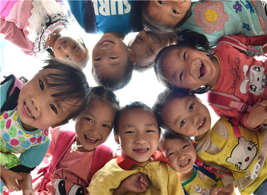 10月10日,在广西都安瑶族自治县隆福乡渔洞小学,同学们在课间玩游戏。从2016年秋季学期起,广西免除建档立卡贫困户家庭适龄儿童在幼儿园的保育费和教育费,免除建档立卡贫困户家庭普通高中在校生的学杂费,结合之前实施的相关政策,广西实现建档立卡贫困户子女就学15年免费教育。
