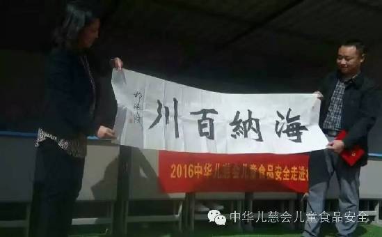 活动中陕西省商洛市人大代表徐荣娥专程前来讲话给予祝贺。兰州著名画家祁继庆老师(《新魏书法》《汉字书写经纬十字定位法》)分别为一直以来支持儿童食品安全项目的爱心企业--象园雾芽董事长刘法海先生和学校分别赠送“海纳百川”“幽兰心香”二副新魏体书法作品等。