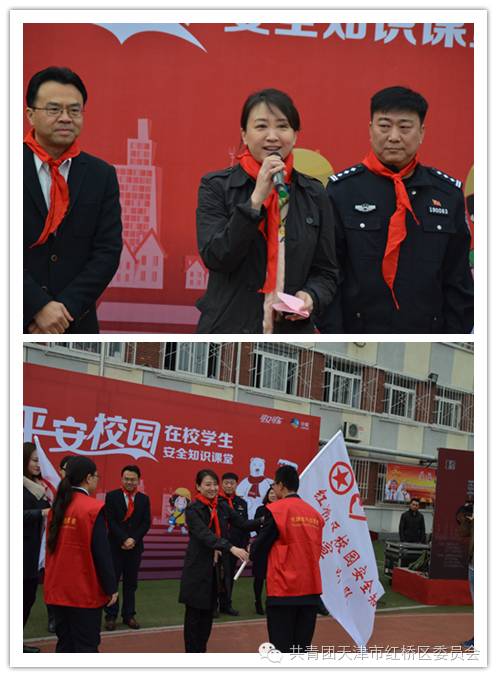 此次活动,团区委整合区内优势资源,联合交警红桥支队、区人民检察院共同组建红桥区校园安全知识宣讲队,助力“平安校园”建设。在启动仪式上,团市委志工部于璐部长为宣讲队青年志愿者代表授旗。团中央志工部部长张朝晖作重要讲话。张部长对此次活动给予了充分的肯定,并鼓励孩子们好好学习,做交通安全知识的宣传员和传播者。