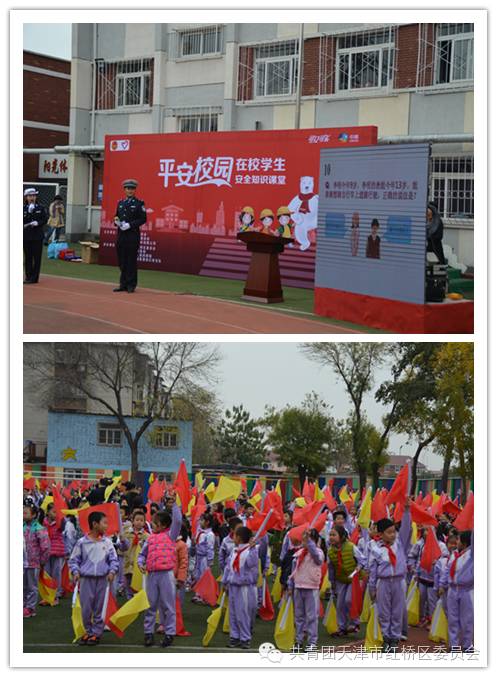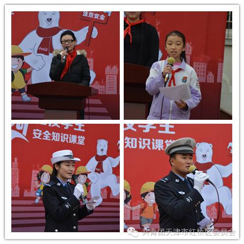 为切实增强中小学生的安全意识,让学生积极学习自防、自护、自救知识,提高认识,掌握技能,远离伤害,健康成长,按照团市委工作部署要求,团区委、区教育局、区检察院、交管红桥支队携手天津可口可乐饮料有限公司在红桥区中小学中开展“平安校园”安全教育活动,向学生教授交通安全常识、自护自救和日常安全知识,保证青少年的健康成长,共筑平安校园。