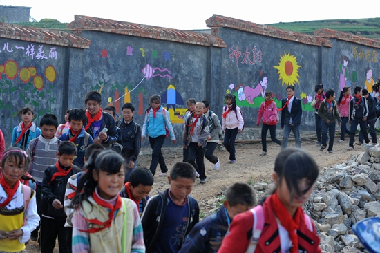 2011年6月13日,云南昭通市昭阳区小龙洞乡宁边村小学的孩子们,其中很大比例为留守儿童。很多孩子每天要徒步数十公里上学(资料照片)。视觉中国供图