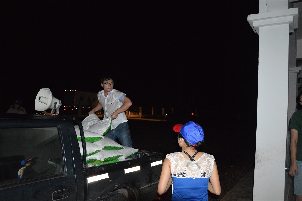 台风登陆过后,风也渐渐减弱了,这时又收到昌发村委会发来的求助讯号,村里95%的房屋都已倒塌,很多村民被困在废墟里面,情况十分危急,符杨壮同志便跟随救援队赶往昌发村委会进行救助,一路上都是被吹断的树木和树枝,见此情景,符杨壮同志连同救援队人员手持镰刀,顶风冒雨砍树开路,终于打通了一条通往昌发村委会的道路,到达村委会后,及时向村支书了解了受灾情况,并详细了解了灾民的需求,为了解决群众急需,马不停蹄赶回镇政府向相关领导汇报,筹集了一批物资连夜送到了该村委会的几个安置点,由于几个安置点比较分散,而且晚上又停电,路况也不好,所以一直到晚上十一点多才送完。由于天色已晚,且全镇都已断水断电,符杨壮同志忍着饥肠辘辘,在车上和衣而眠。
