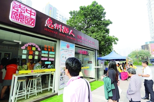 11月8日上午,惠州市以爱岗敬业好人名字命名的社区志愿服务站——惠州好人志愿服务站(杨容珍站)正式在仲恺高新区T-Park时尚购物广场启用,这也是我市仲恺高新区首个好人志愿服务站,它的启用是继诚实守信好人名字命名的胡美香站之后的又一座以好人名字命名的社区志愿服务站。据悉,惠州好人志愿服务站开放时间定为周一至周五 10:00~12:00,15:00~17:00,19:00~21:00;周六、周日10:00~21:30,由好人或好人所在的志愿服务组织、进驻的志愿服务组织轮流值日。