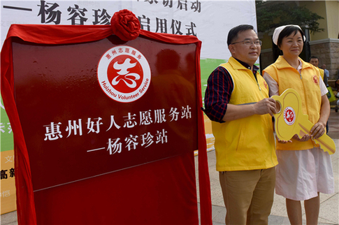 “惠州好人”志愿服务站——杨容珍站在仲恺投入使用