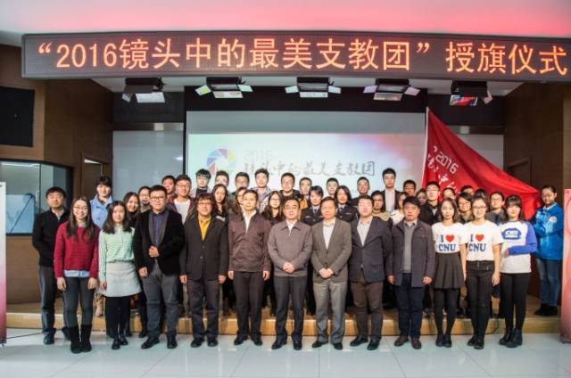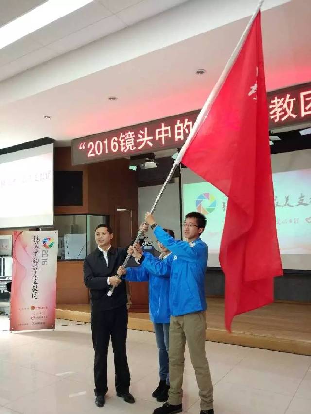 近日,由共青团中央、光明日报社、中国青年志愿者协会共同主办的“2016镜头中的最美支教团”活动在京举行授旗仪式。中国人民大学党委副书记吴付来、共青团中央志工部副部长王明学、光明日报社会活动部主任胡斌,支教团队代表以及支持单位映客直播的代表共同出席了活动。