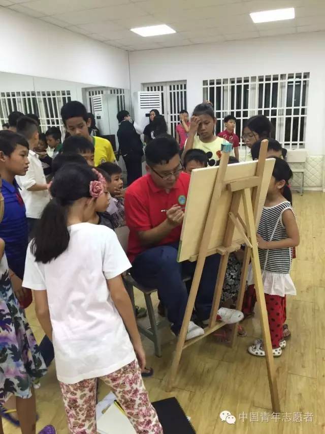 乒乓球老师姜慧,初到柬埔寨时还承担起了1—4年级的数学教学课。令她没想到的是,世界上最遥远的距离不是从“体育老师”到“数学老师”,而是一个班的学生里,有的乘法口诀还没学会,有的却已经把一学期的习题集做完。 为帮助“后进生”,姜慧上网搜索了大量数学教案,利用一切空余时间制定辅导计划。作为良师益友,姜慧感动于孩子们的刻苦,也欣慰于他们的成长。 如今,从开始教学的第一个“汉字”、第一幅“绘画”,孩子们已渐渐熟悉并喜欢上了中国的传统文化。每当曹勋昶在课堂上讲起中国的书法和绘画知识,孩子们都会立即瞪大眼睛,聚精会神。 在曹勋昶看来,第一次身处异国的自己,也正和第一次“负笈求学”的孩子们成为日常生活里的温暖的陪伴。对孩子来说,离开父母独自在学校学习生活,难免闹点别扭、耍点脾气。除了备课和教学,曹勋昶作为班主任,会花费更多时间去引导与陪伴他们,帮助他们用最快的时间适应小学的学习生活。 在中国文化中心,这个文化部在海外设立的第一个官民合办传播中国文化的试点机构,5名青年志愿者付出了全部的热情和才能,从初到时的“懵懵懂懂”成长为现在的“驾轻就熟”。他们承担着1—4年级、每天8个课时、100余名学生的汉语教学,以及美术、钢琴等5个专业课程的教学工作,每周累计40个课时。