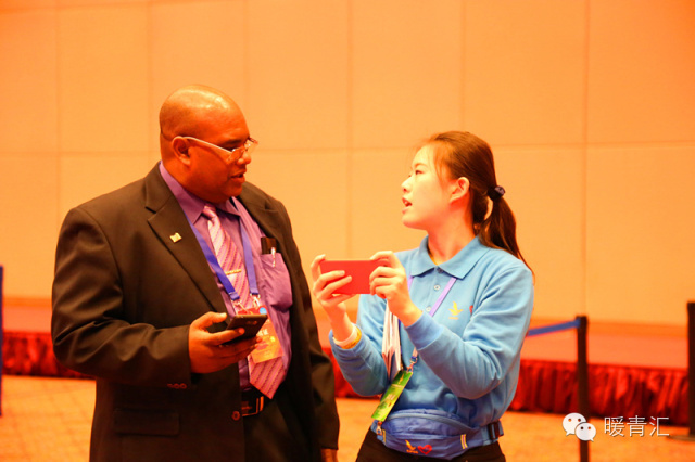 走在大会现场,随处可见“蓝精灵”的身影,他们或与外宾愉快交谈、或为嘉宾答疑解惑,也有志愿者时刻不忘向外宾介绍咱们美丽的山城。