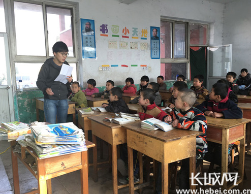 捐赠仪式结束后,来自河北师范大学志愿者老师董超为学生们上了一堂红色历史教育课,通过讲解红色历史故事,让贫困山区小学的孩子们重温红色历史,接受爱国主义教育。