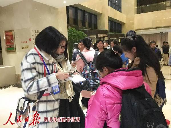 大学生志愿者在签到岗位上