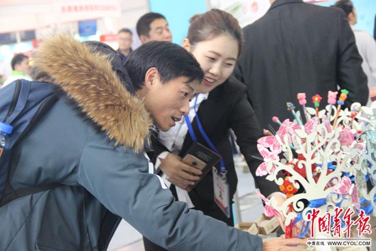 参赛项目展台的精巧设置引发人们的极大兴趣。(陈凤莉/摄)