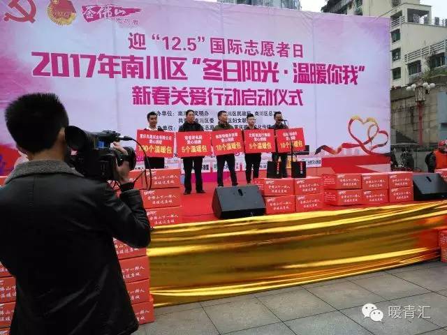 12月5日,由南川团区委牵头组织实施的“冬日阳光·温暖你我”新春关爱行动在区鼓楼坝广场举行启动仪式迎接“12.5”国际志愿者日的到来。活动将围绕拍卖和节目表演开展,此次拍卖的物品是舞台周围的“温暖包”包里面有冬天能用到的围巾、衣物和孩子们的学习用品,拍卖后会在包上写下购买者的名字再由志愿者们亲自送往南川周边山区给留守儿童和老人们。
