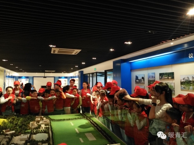 图二,志愿者们与孩子们在参观工商大学校史馆。