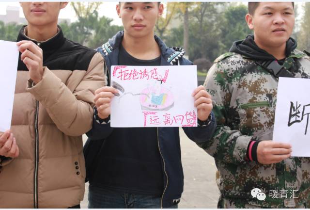 “拒绝诱惑,远离网贷”、“防火防盗防师兄,该防的都得防““拒绝网贷”,重庆交通职业学院校团委青年志愿者协会的志愿者们用手绘、写标语的形式在校园里宣传网贷的危害,迎接国际志愿者日的到来。