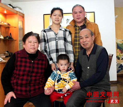李声英(中间)和家人在一起 图片来源:武汉文明网