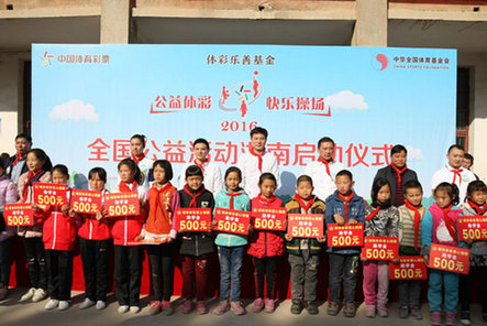 “今年是湖南第二次开展‘公益体彩快乐操场’活动,在国家体彩中心捐赠的基础上,我们湖南省体育彩票管理中心将再配套价值150万的体育器材捐赠40所学校。”湖南省体育彩票管理中心主任李晖表示,“‘快乐操场’活动充分体现了体育彩票‘来之于民,用之于民’的公益宗旨,也积极响应了当前国家推进的‘精准扶贫’工作思路,聚焦于当前学校体育教育中的短板。我们希望‘快乐操场’活动的持续开展,能够呼吁全社会行动起来,关注孩子们的健康,创造良好的体育健身环境,从基础体育教育抓起,共同推动下一代的健康成长,建设体育强国。”