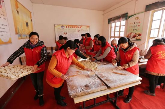 12月8日,在河南省武陟县北郭乡赵马蓬村慈善幸福院,爱心人士在为老人们包饺子。当日,每月一次的“慈善饺子宴”活动在当地爱心人士、志愿者和义工组织的帮助下如期开展。近年来,河南省武陟县不断丰富“慈善养老”的内涵,通过定期举办饺子宴、义工帮扶、健康体检和送戏下乡等活动,为农村老人送去温暖,弘扬尊老敬老、爱老助老的传统美德。冯小敏/摄(新华社发)