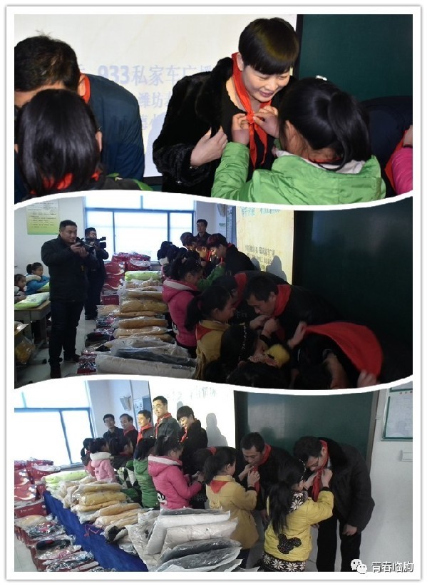 12月21日,暖冬公益行——“牵手关爱·衣往情深”项目走进沂山明德小学。该项目由共青团潍坊市委、933私家车广播携手广华奥迪、春雨义工、潍坊泰华城为学生及贫困家庭送去棉服、羽绒服等衣物共计289件。